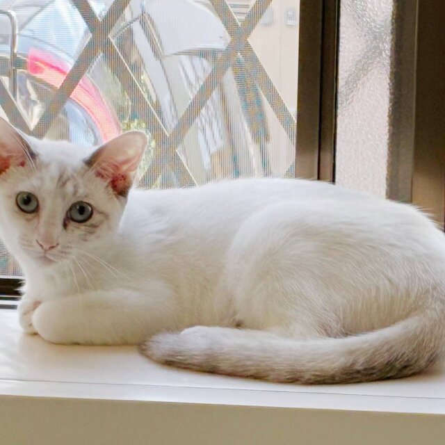 淡いブルーアイズのシャムミックスの女の子です。
