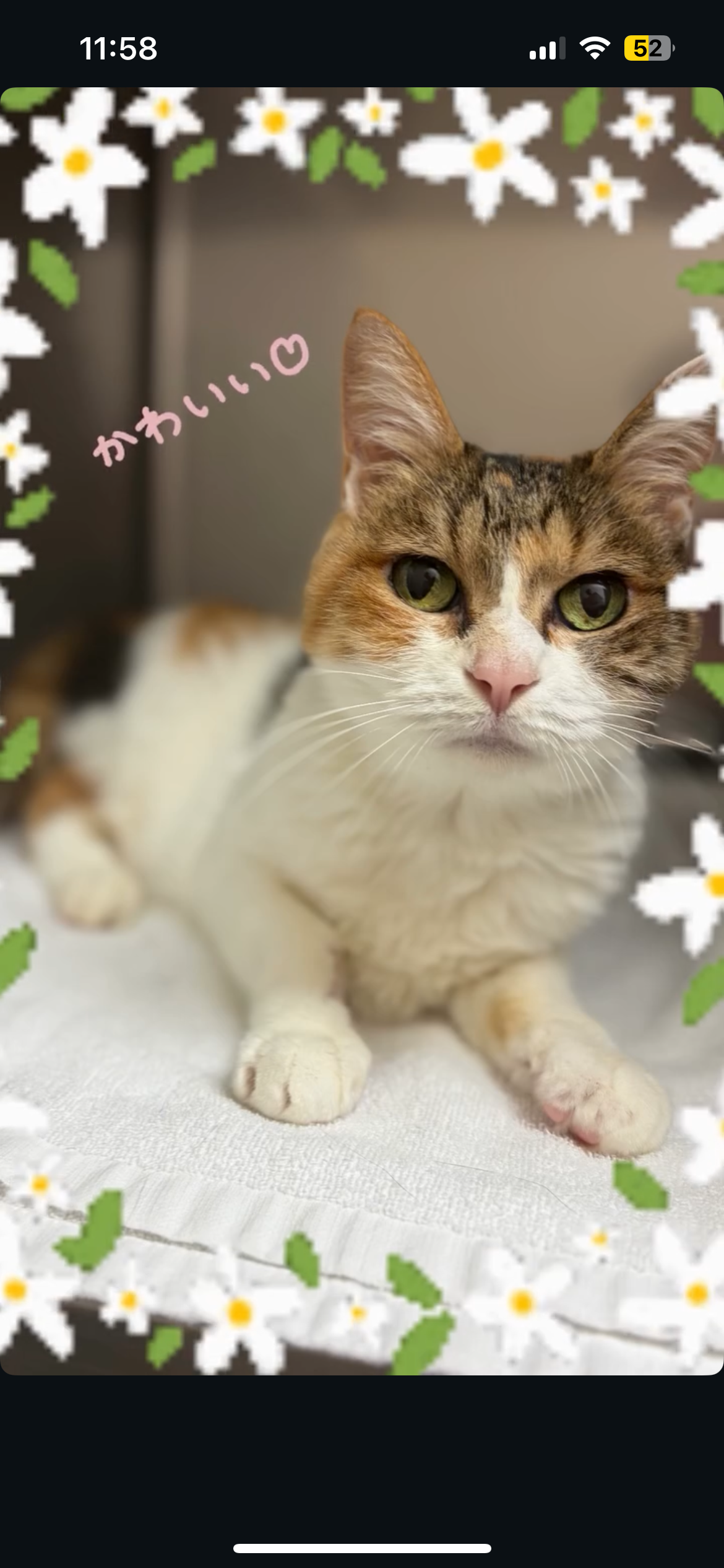 大人しいタイプの女の子。他の猫ちゃんが苦手な一人っ子タイプ