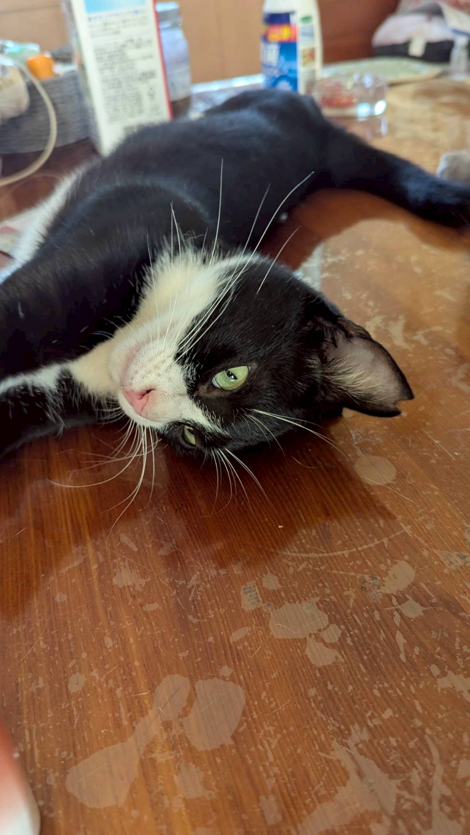 甘えん坊で座ってると膝に乗って来てスリスリ、ゴロゴロしてます。