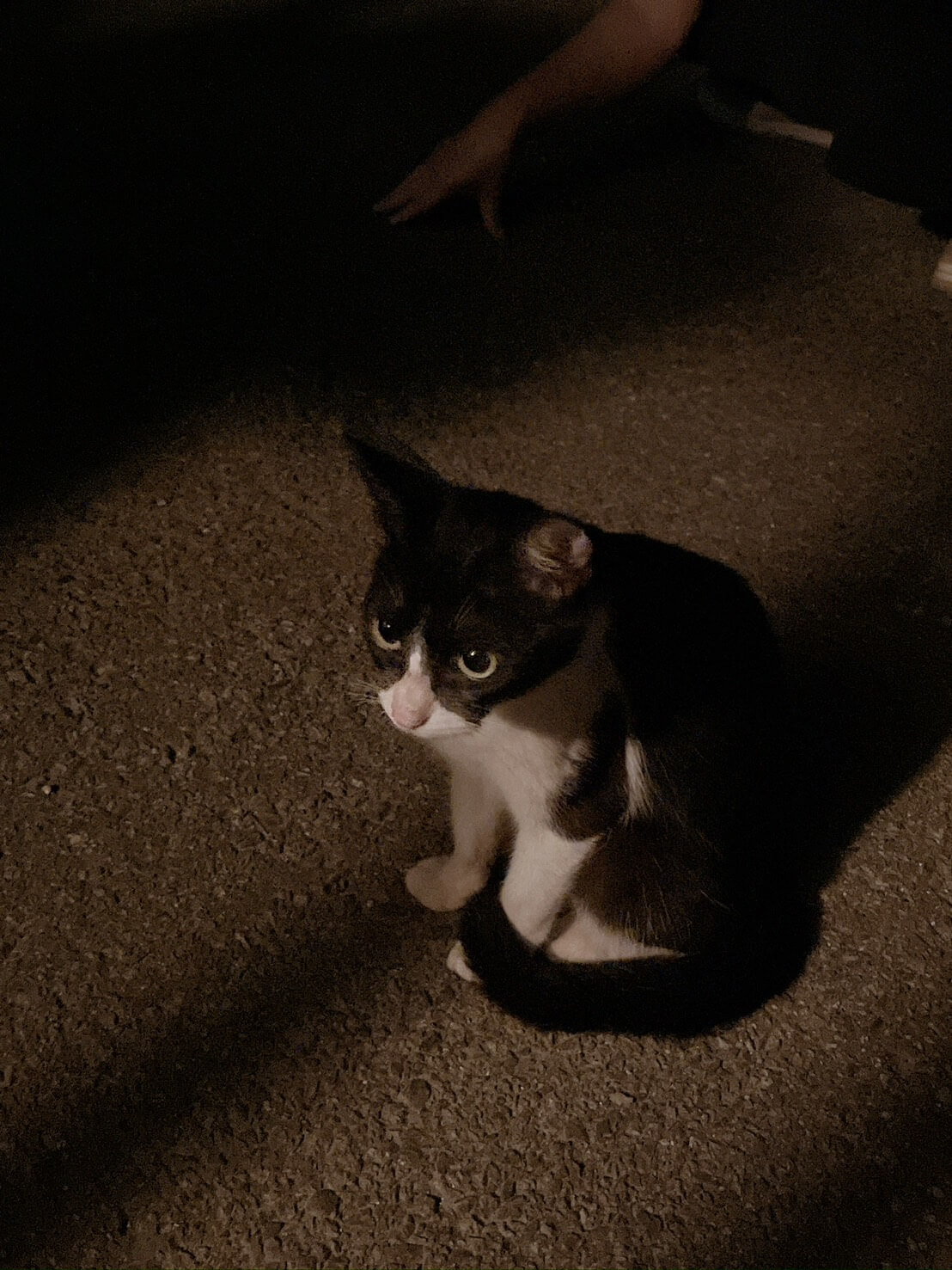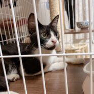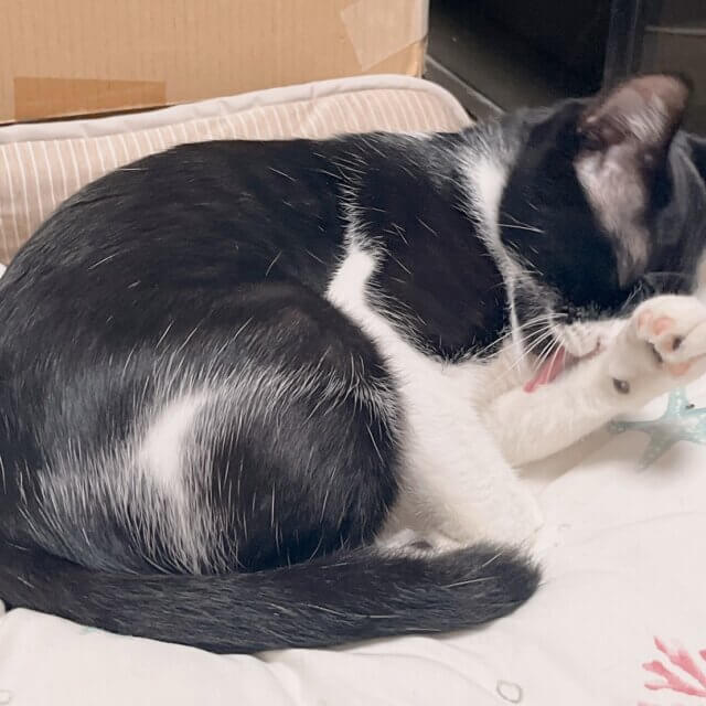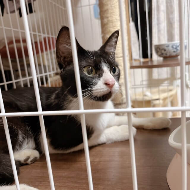 誰にでもすぐ懐いてみゃーみゃーとスリスリしてきます。黒のハチワレ模様が可愛いです。