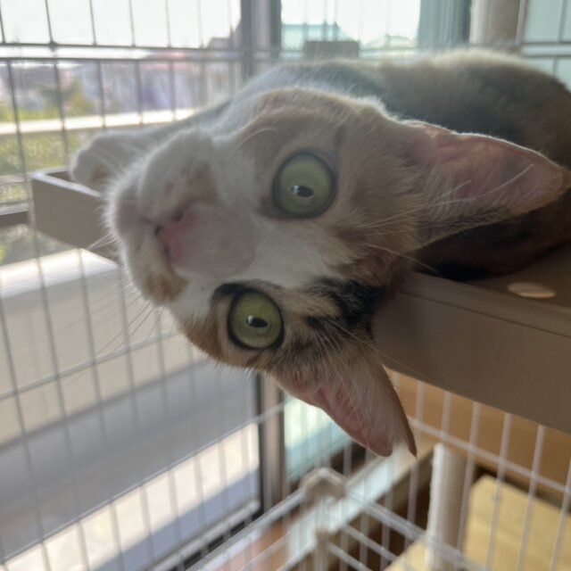 少し小柄な可愛らしい子です。性格は、とにかく好奇心旺盛で何に対しても興味を示します。猫じゃらしで遊ぶ際は、獲物を仕留めようと奮闘し、遊びではなくなります(笑)保護した時から人間に対しての恐怖心は一切なく、ずっと甘えん坊です。