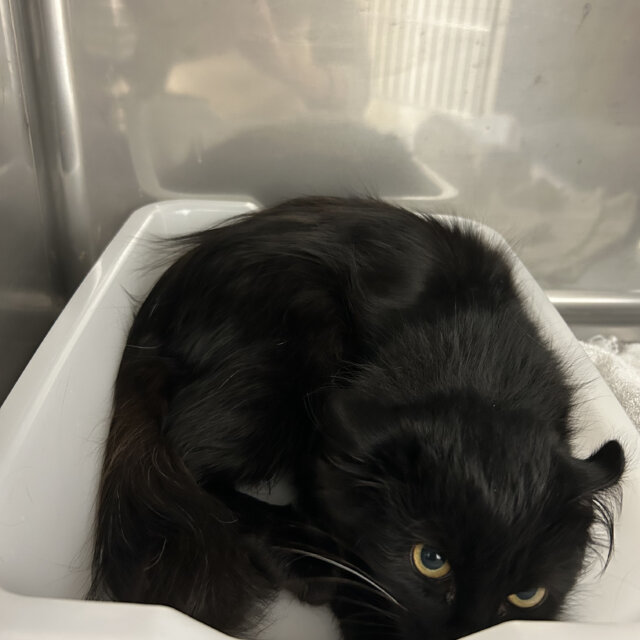 ふわふわの長毛黒猫ちゃん、とっても可愛らしいです。