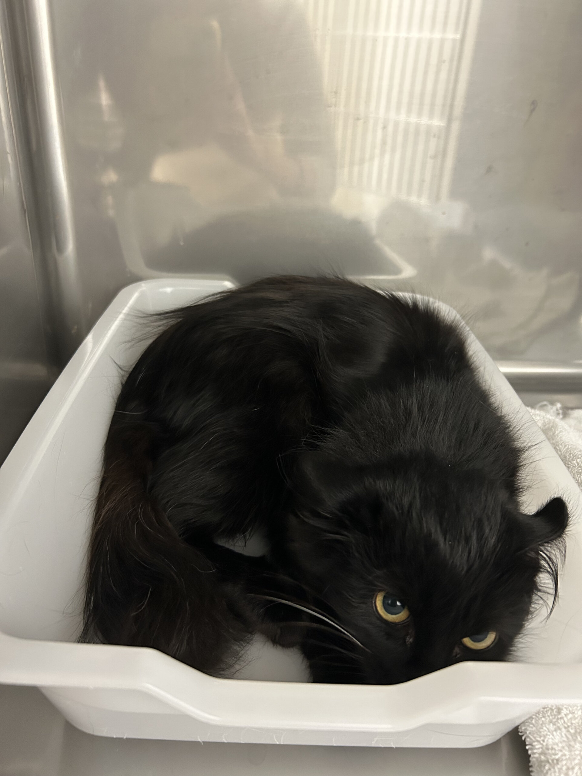ふわふわの長毛黒猫ちゃん、とっても可愛らしいです。