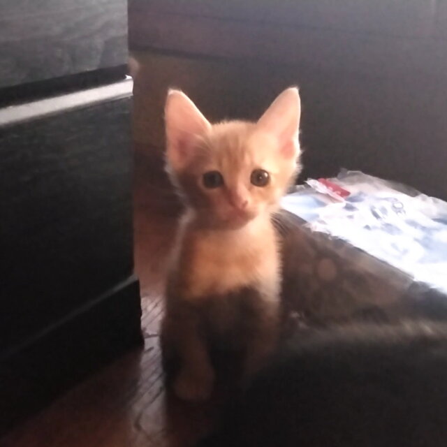 黄金色の美しい毛色です。4兄弟のうち3匹が茶トラでよく似てなかなか見分けが付きません。兄弟の中では一番大きいです。