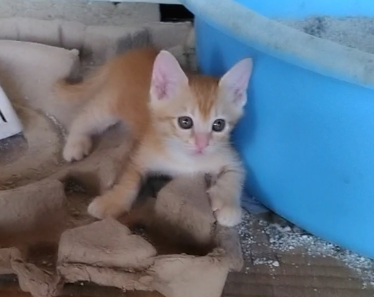 黄金色の美しい毛色です。4兄弟のうち3匹が茶トラでよく似てなかなか見分けが付きません。兄弟の中では一番大きいです。