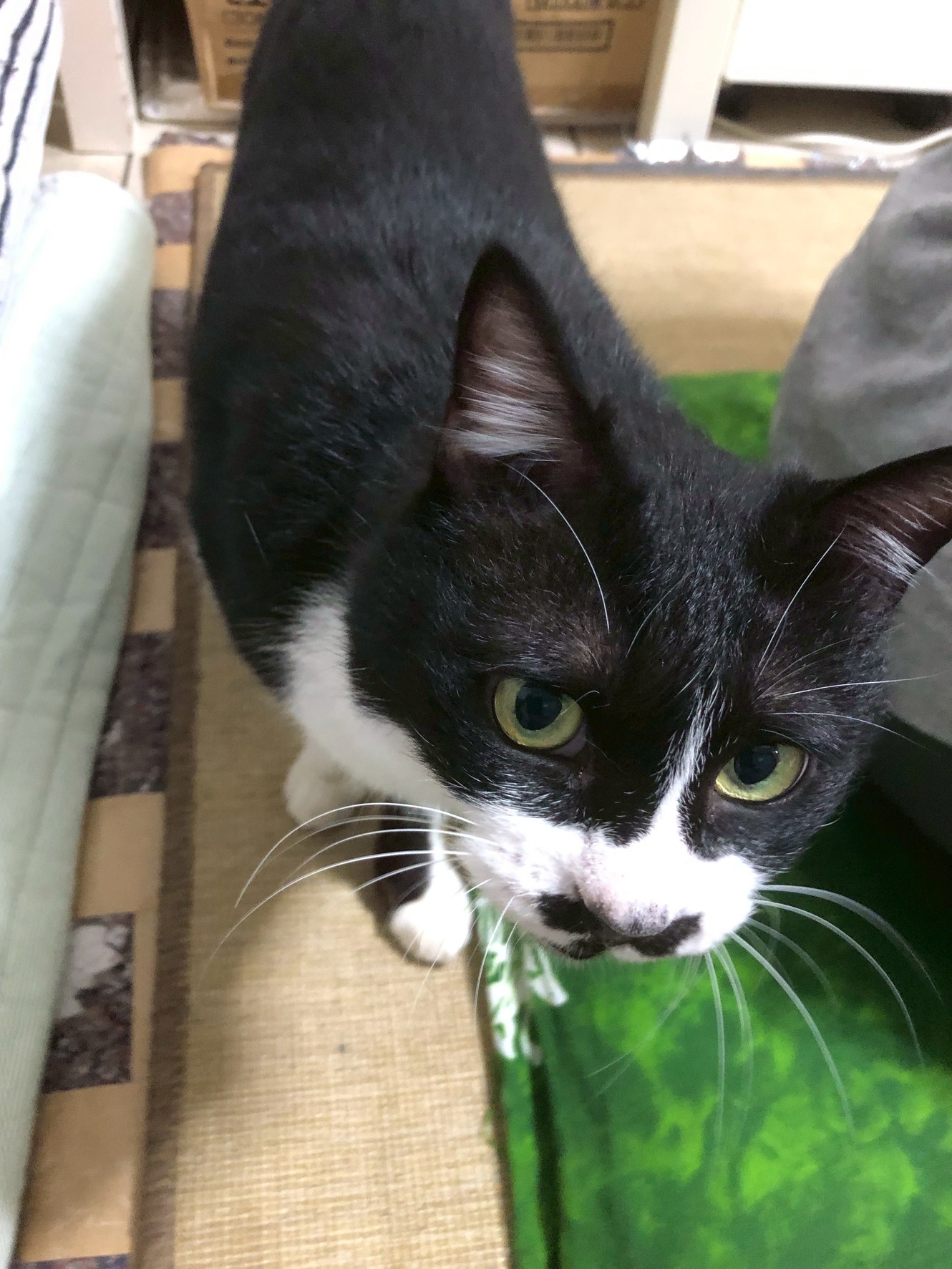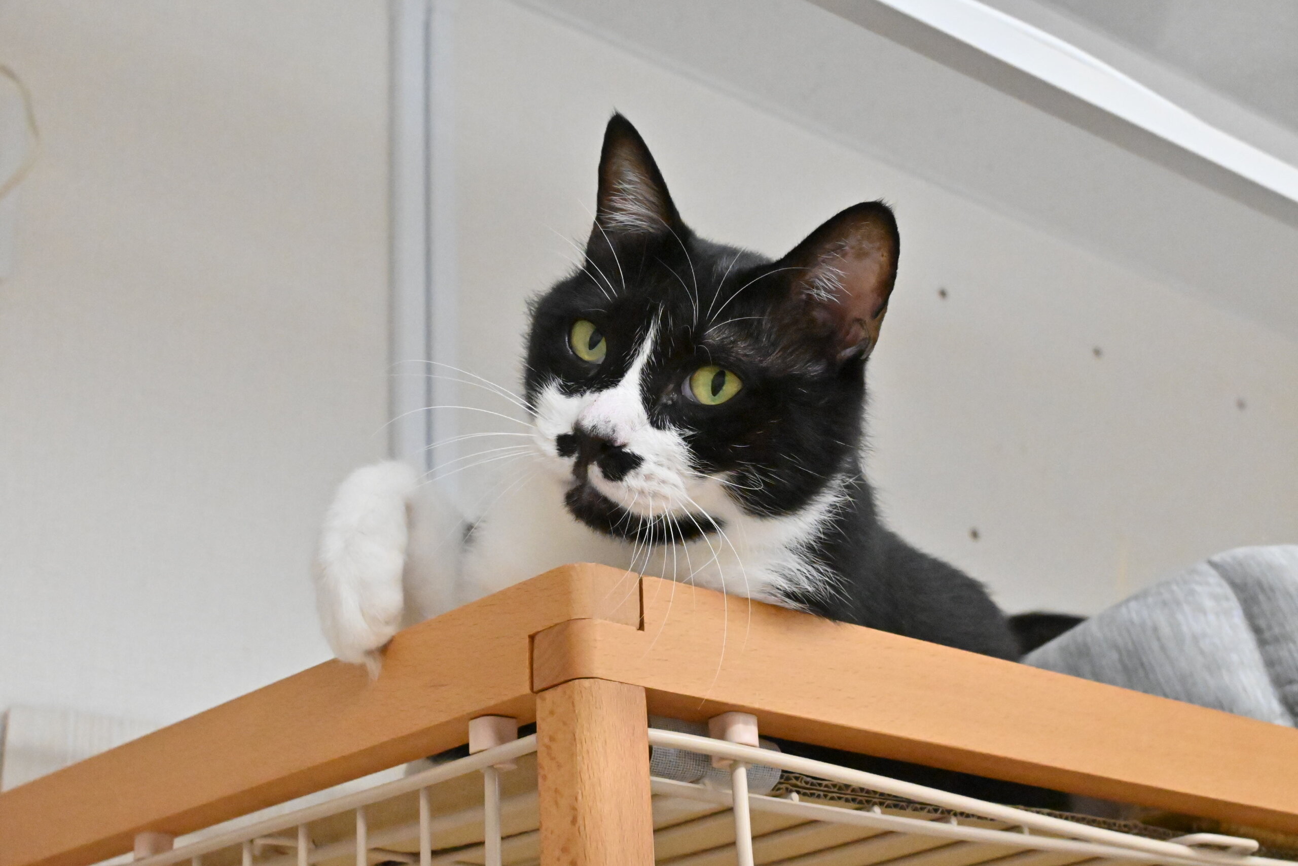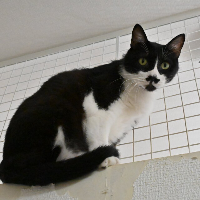 飼い主が亡くなり、きょうだい猫と共に自宅に取り残された。親族が通って面倒を見ていたが、世話しきれなくなり保護となった。2年間狭いケージで2匹で過ごしていた。