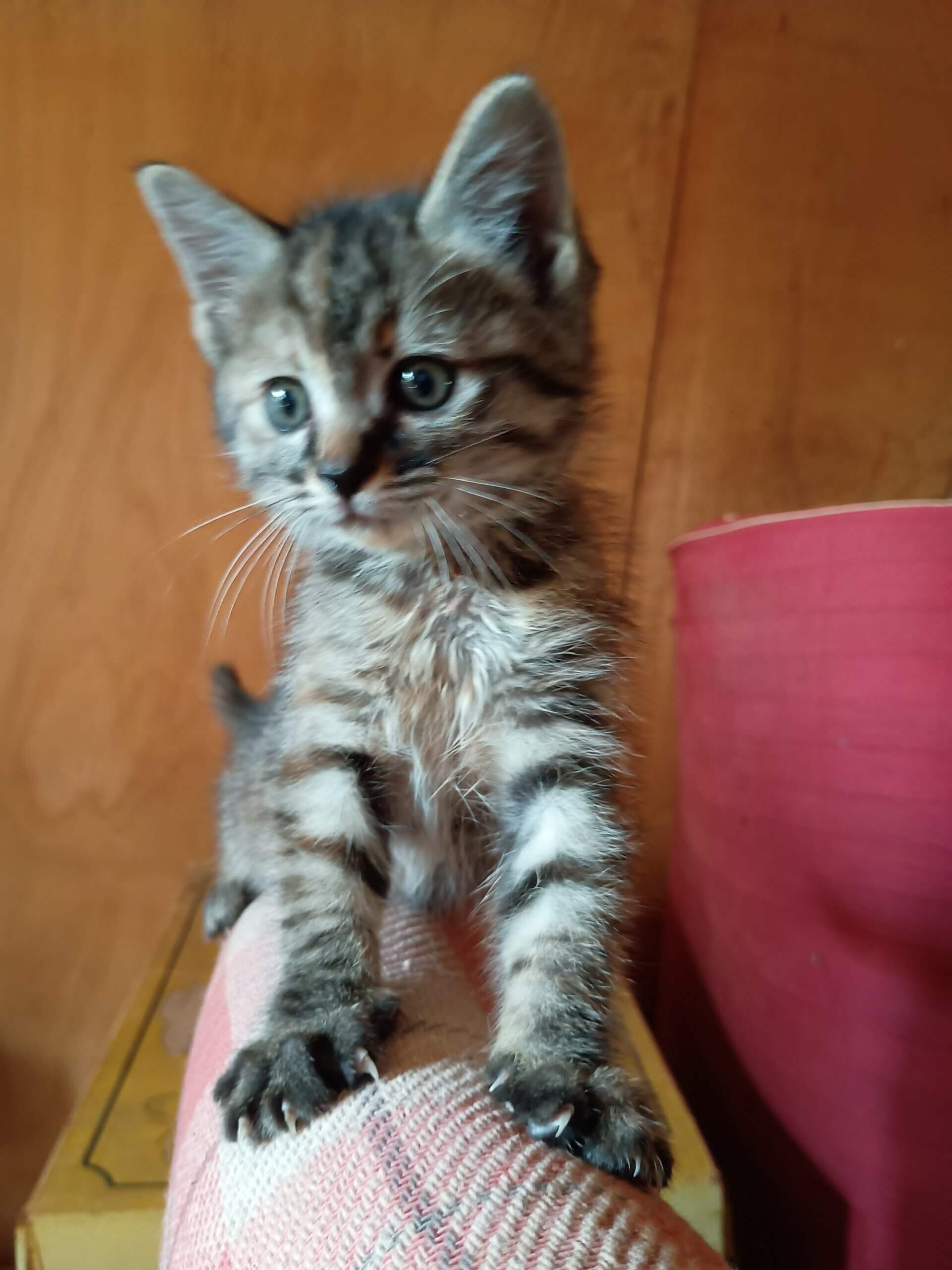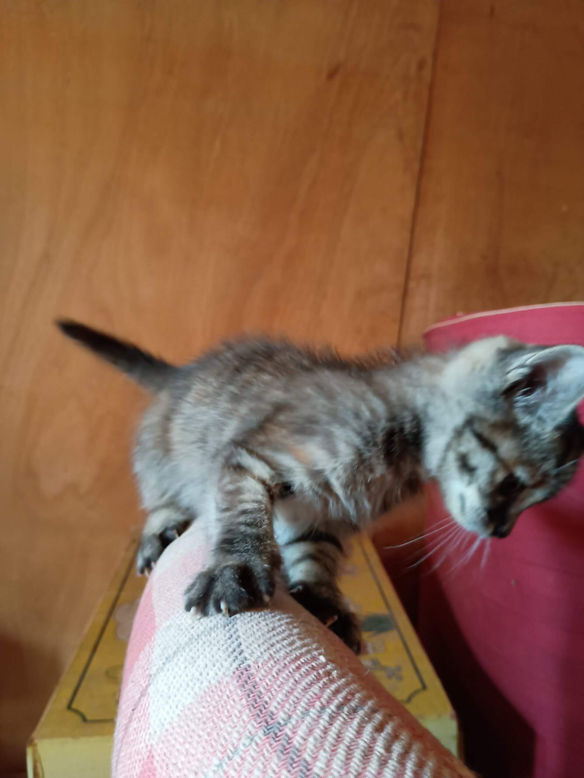 我が家にやってくる野良が産んだと思われますが、納屋の2階に1匹でいるところを発見しました。母猫が育児放棄のため、様子を見ながらお世話をしています。