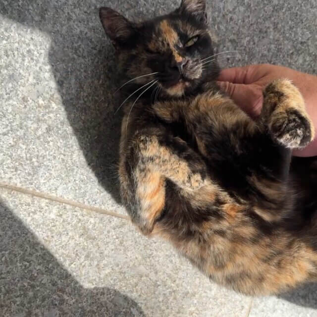 ある日、いきなりお庭に現れました。最初はTNRのつもりでしたが、あまりにも人懐こいため保護に切り替え里親さんを探すこととなりました。