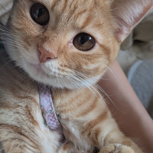 2枚目の猫はメス、3月生7ヶ月であまりじっとしいないことも多いですが、甘えん坊な所もあります。