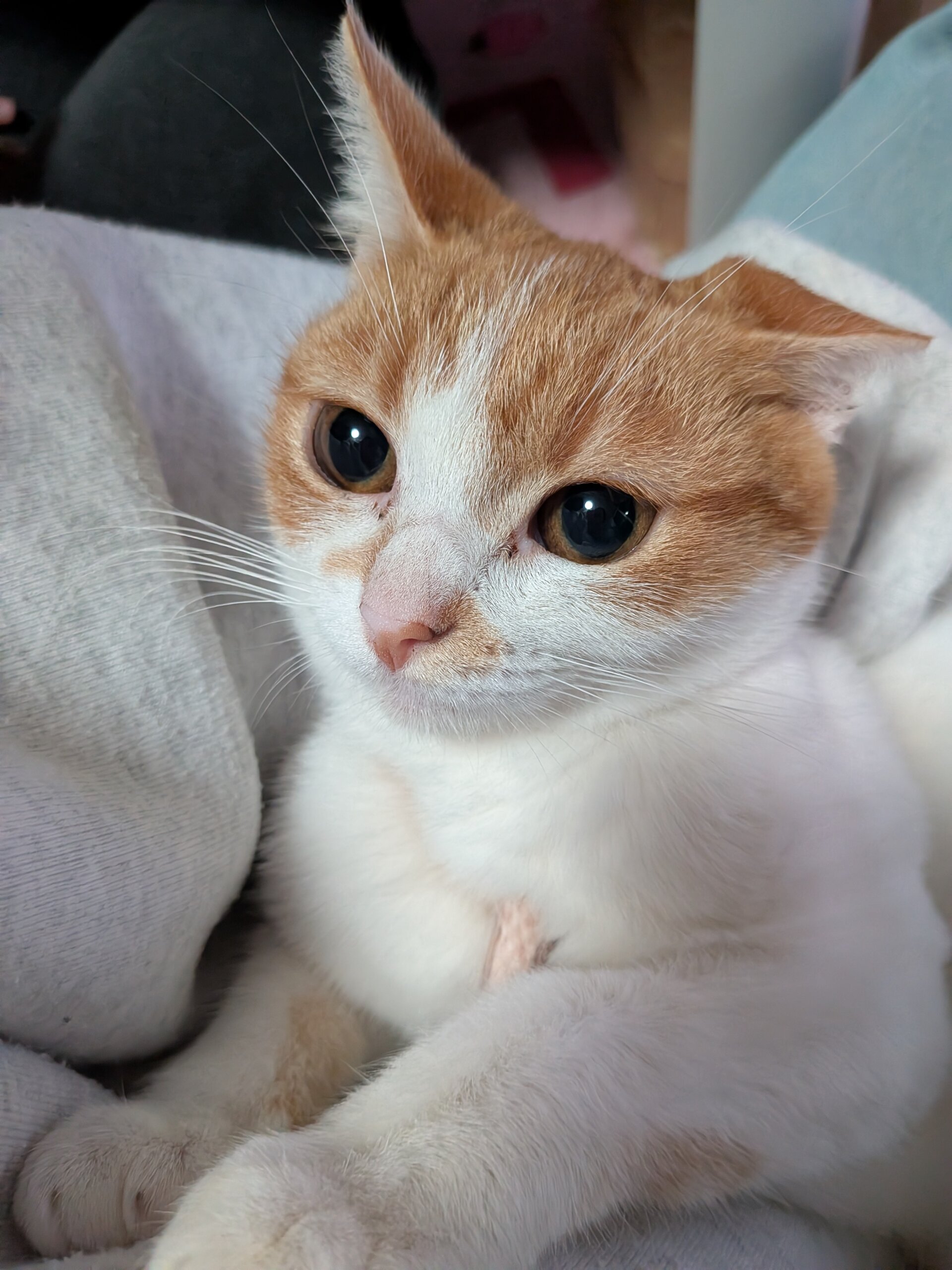 2枚目の猫はメス、3月生7ヶ月であまりじっとしいないことも多いですが、甘えん坊な所もあります。