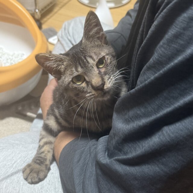 治療期間が長かったせいか、他の猫との関わりが少なく、シャールしてしまうため、ひとりっ子希望。