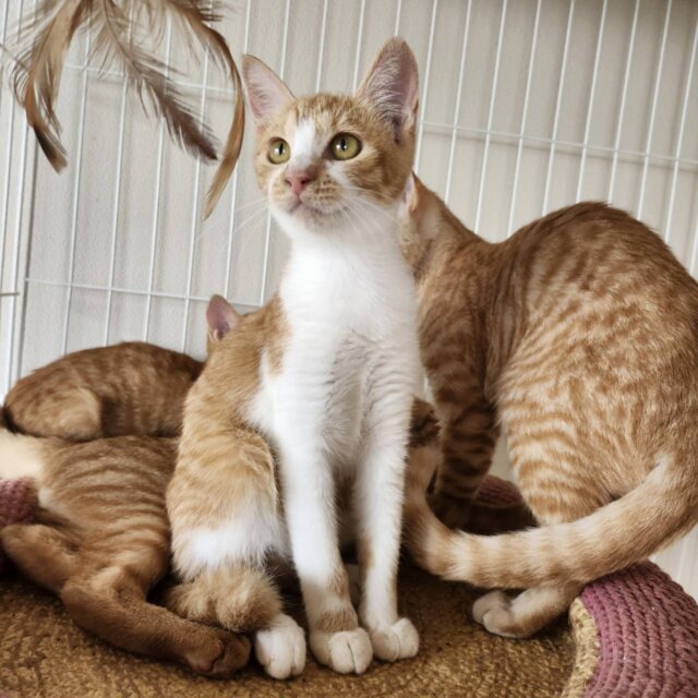 多頭環境に慣れているので、先住猫ちゃんのいるお家でも上手く過ごせると思います。