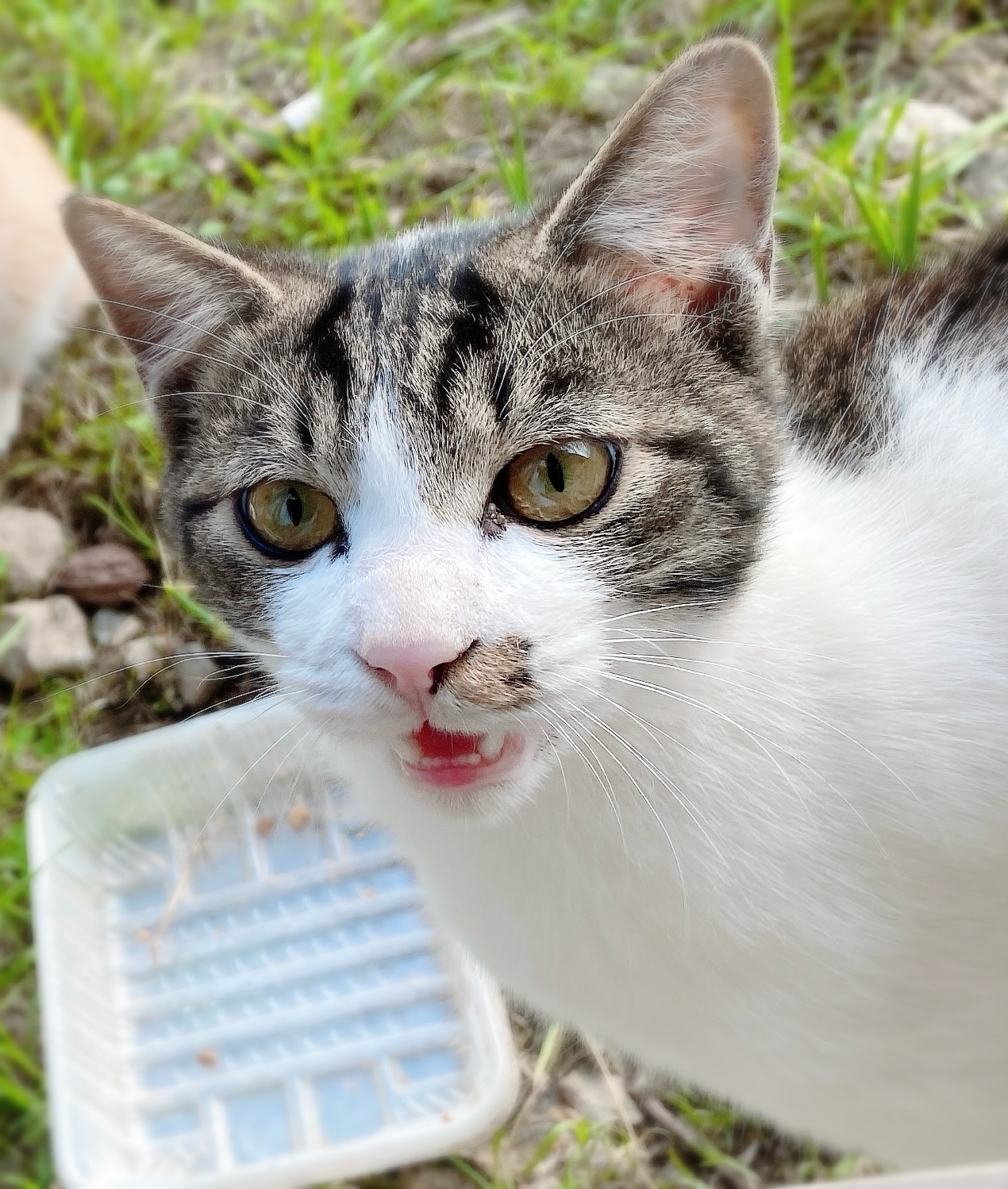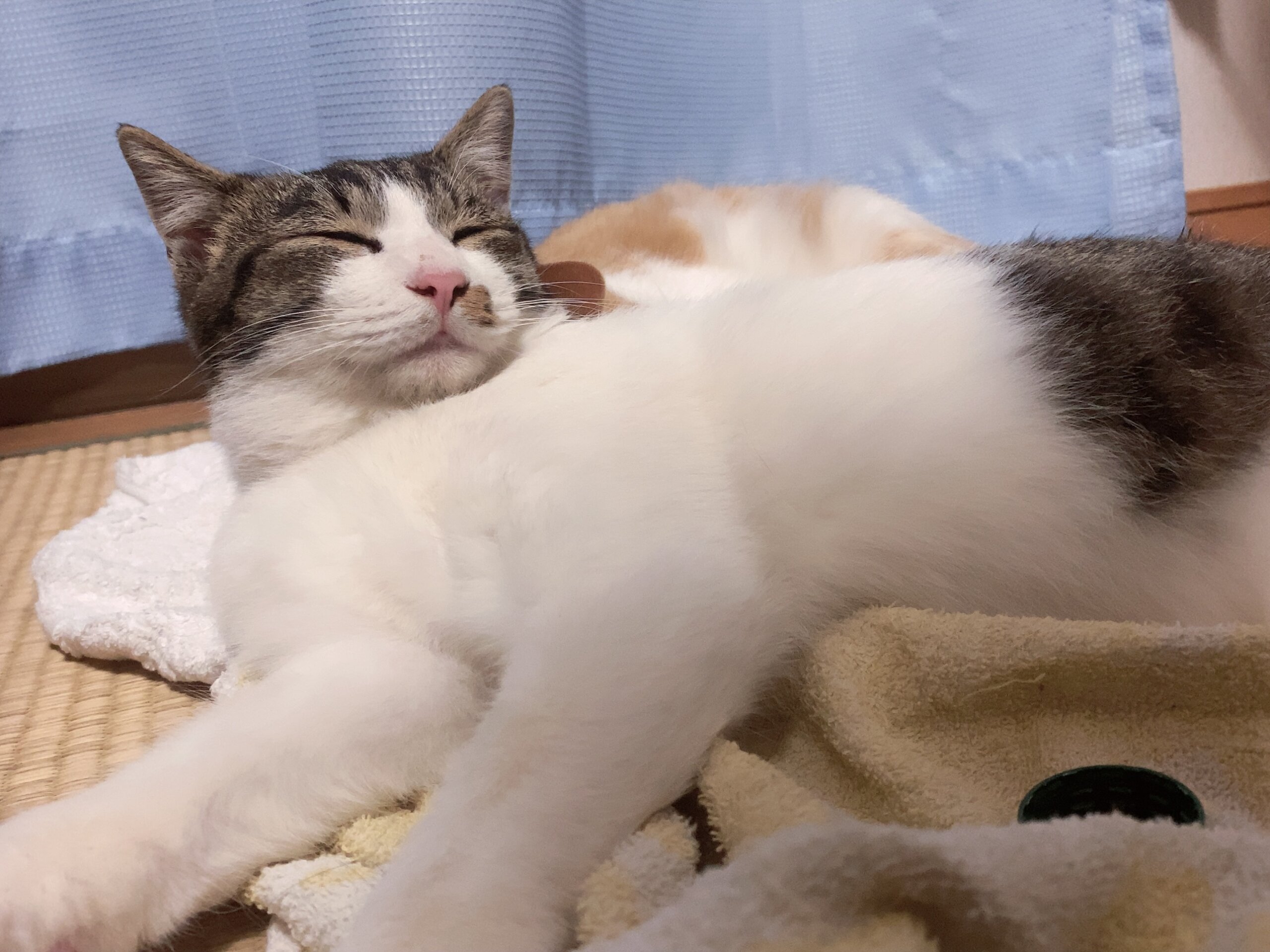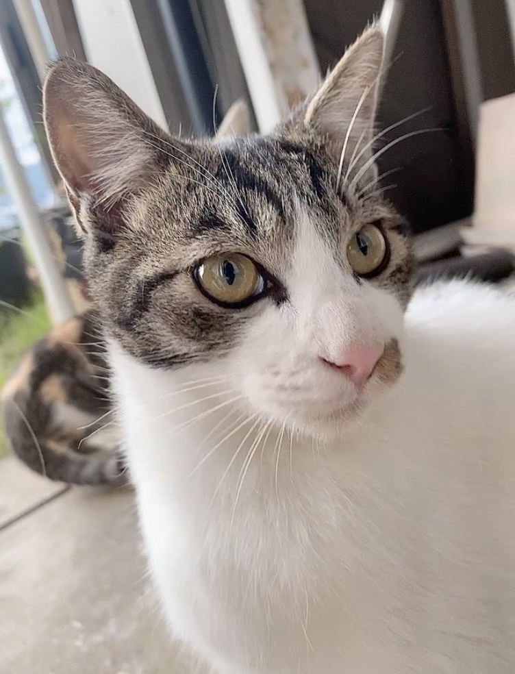 面倒見がよく、兄弟達の毛繕いをよくしてあげてます♡人間には甘えん坊な性格で高い声で喋りながらスリスリしてくれます。最近は頭突きの挨拶もしてくれるようになりました✨