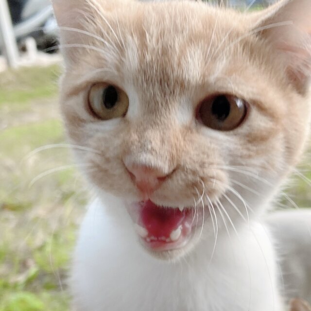 食いしん坊です!どちらかというと弟気質で、さっきまで興味無さそうだったのに、他の猫ちゃん達が私に近づいてくると、「僕もー!」という感じの性格で愛くるしいです(笑)♡