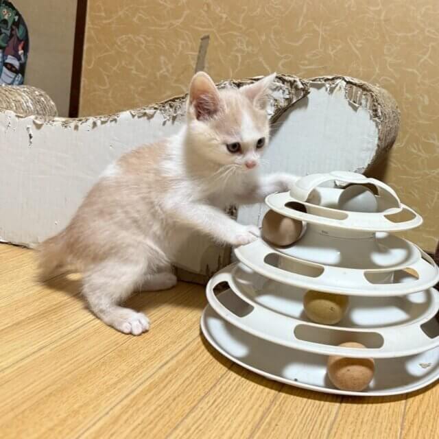 ・アピールポイント:愛らしい見た目とは裏腹に、とにかく活発です。部屋中をボール玉のように走り回っています。オモチャでも上手に遊べます。食欲より遊びが優先な面が有ります。甘えん坊で寝る時は人にくっついて寝ています。途中から一人っ子になった割に社会化ができているのか、甘噛みが優しいです。