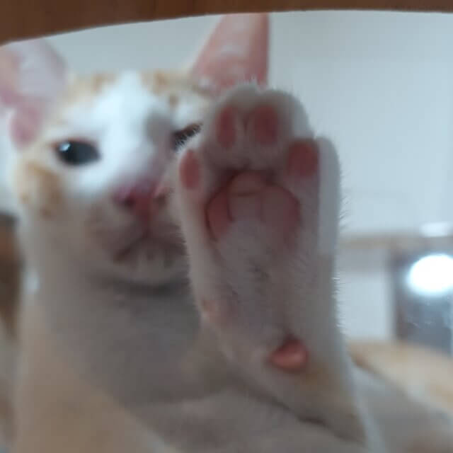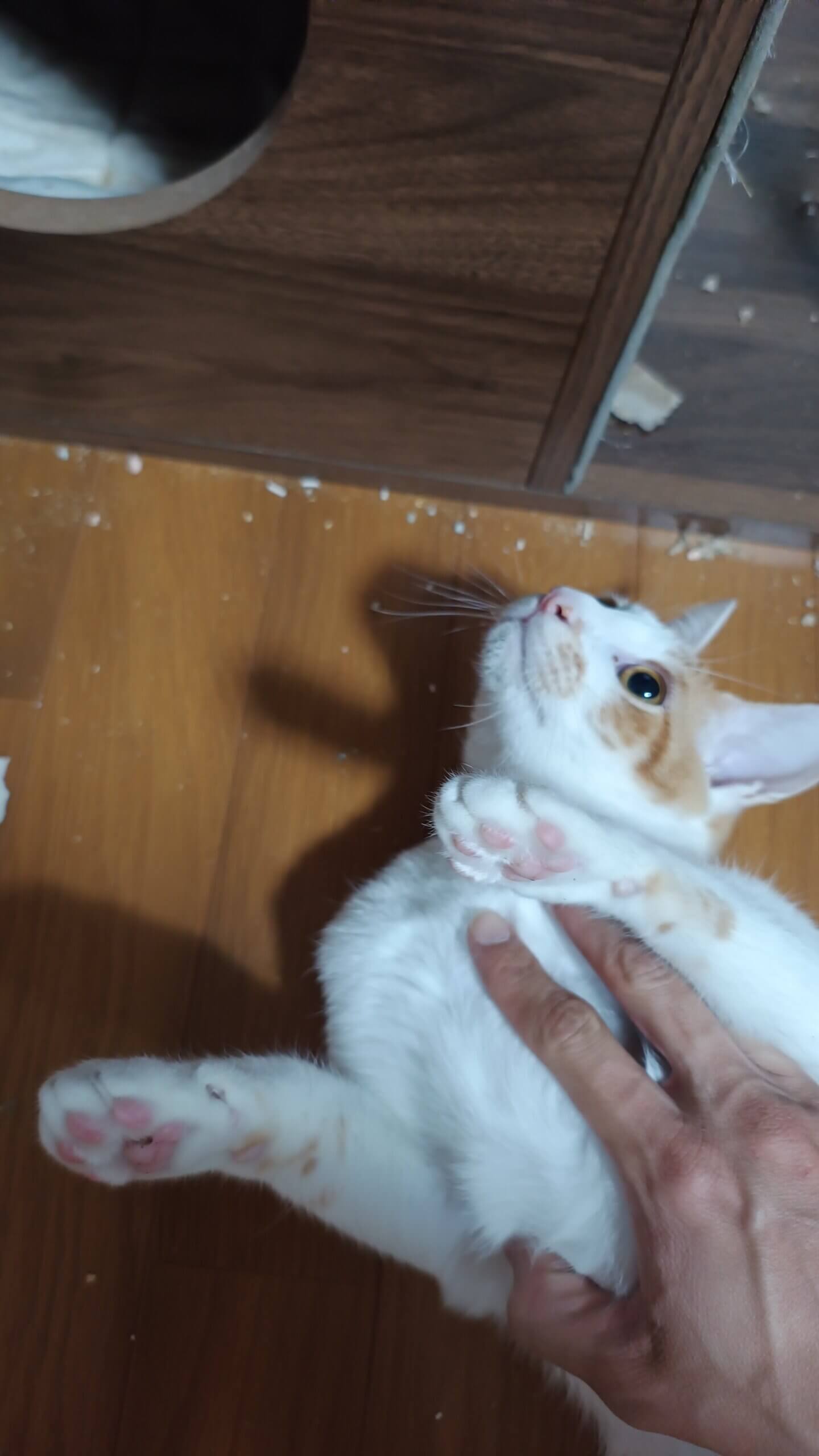 茶白らしい穏やかさもあり、攻撃性はありません。