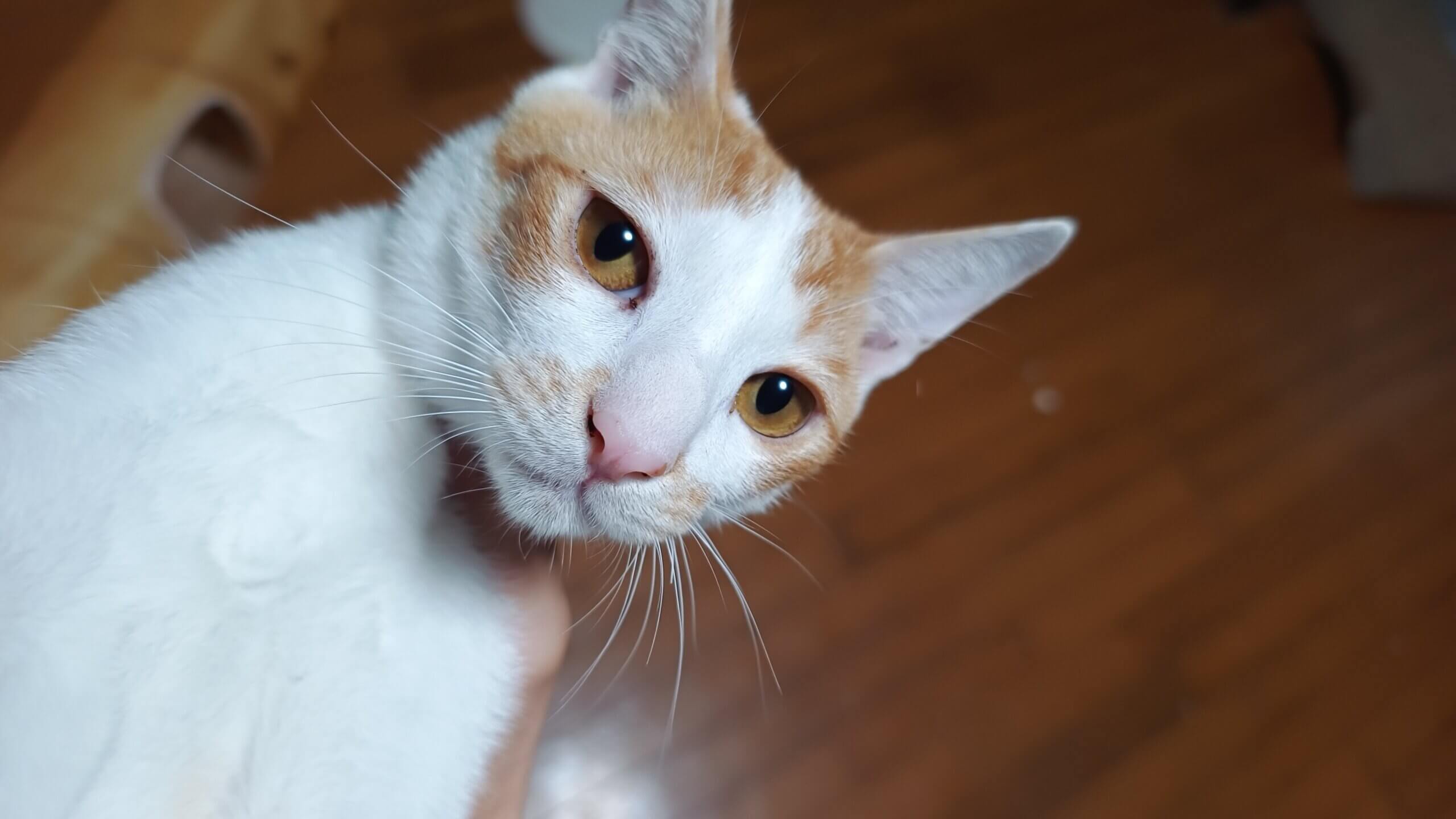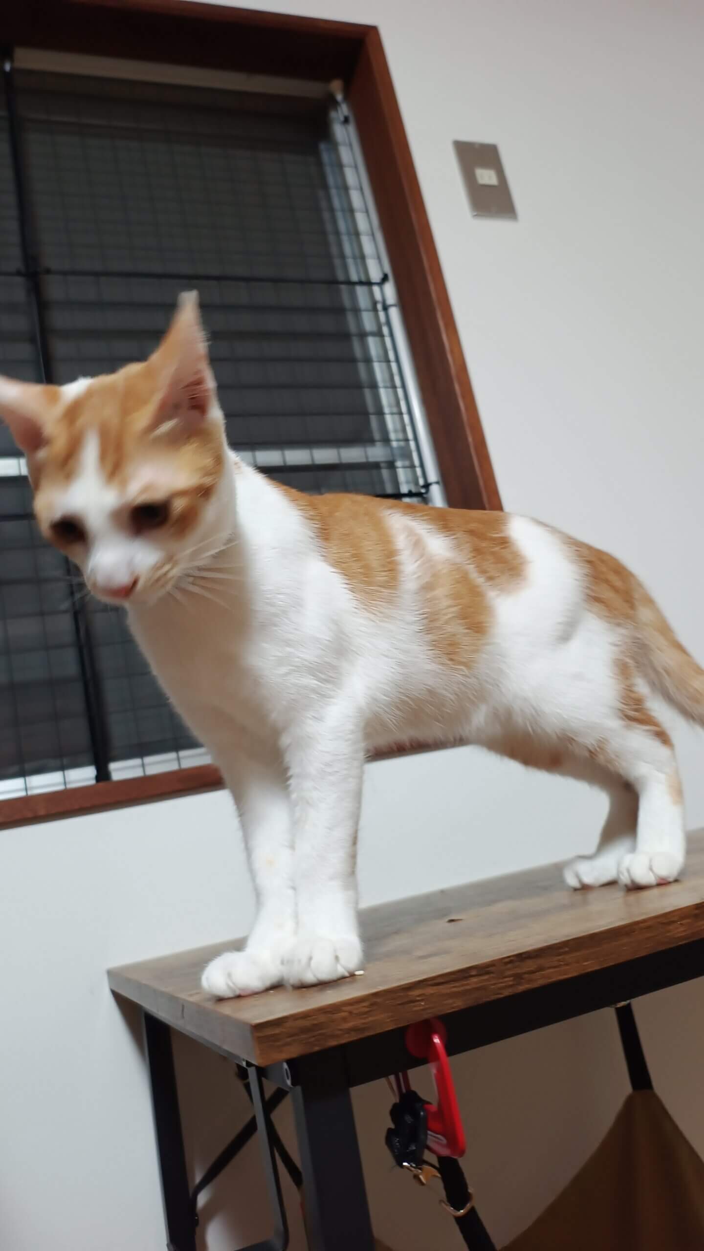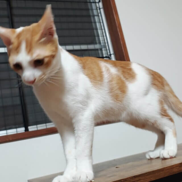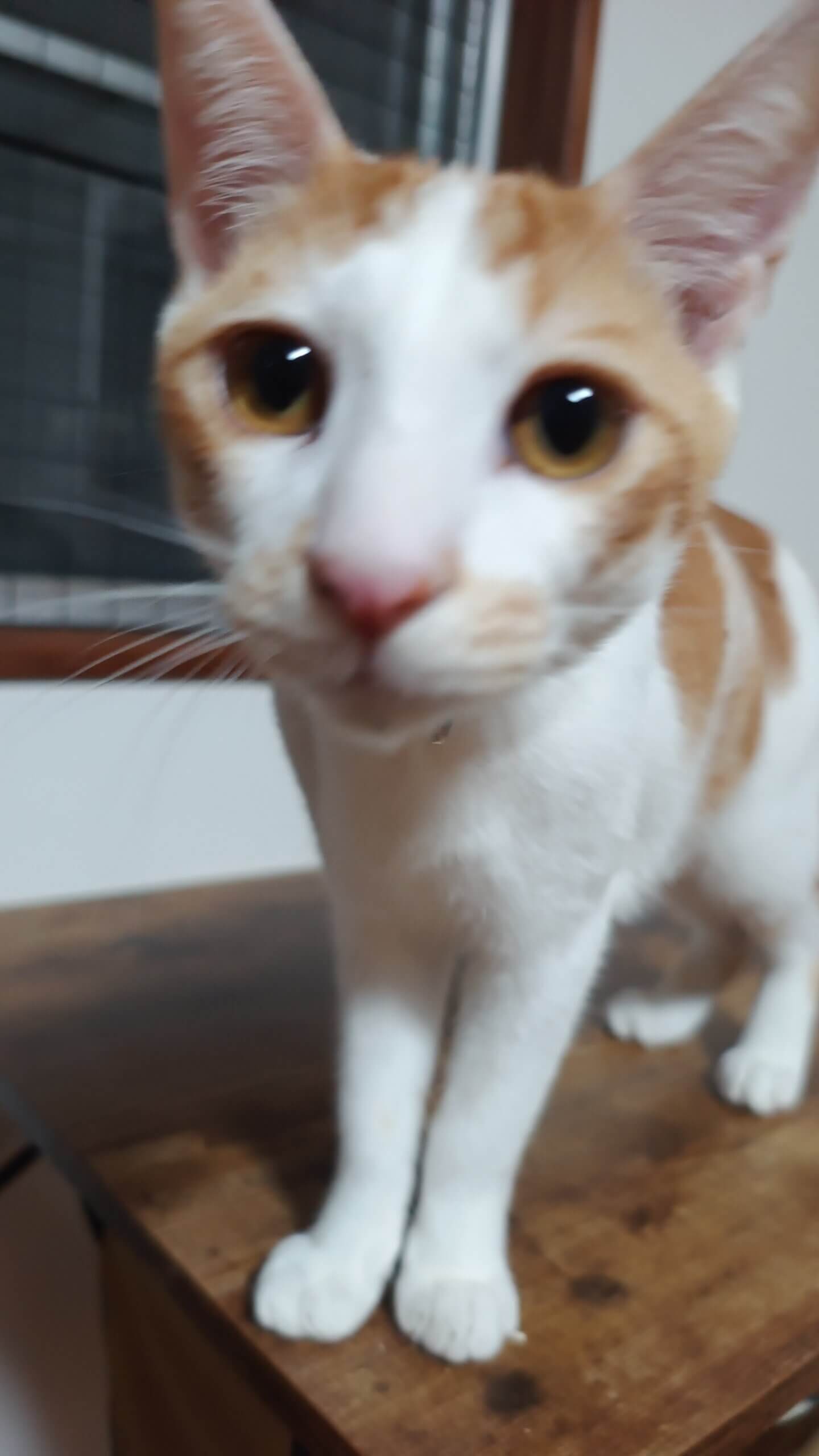 ごはんの気配を感じると、かわいい声でアピールしたり、そっと近寄ってきたりする愛嬌たっぷりの男の子です。