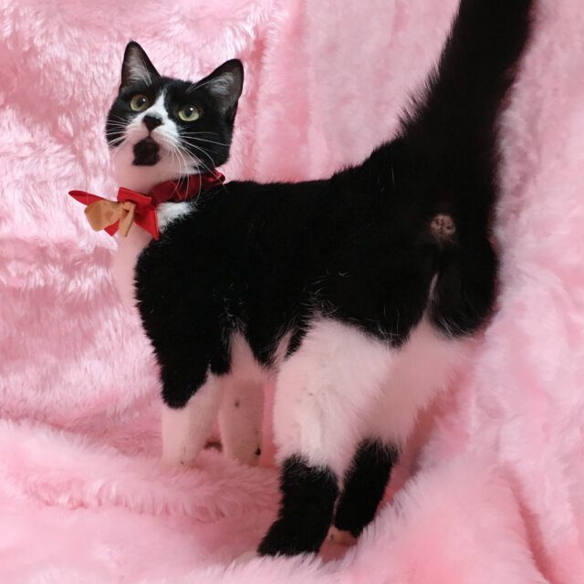 【毛色・柄】 黒白ハチワレ スラリとした長いシッポ