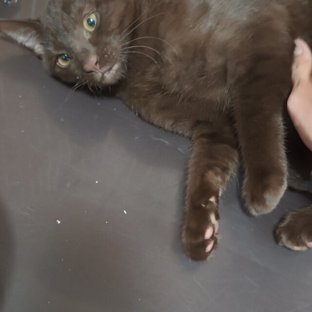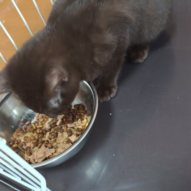 つやつやのこげ茶色の毛並みがとてもきれいな男の子です。