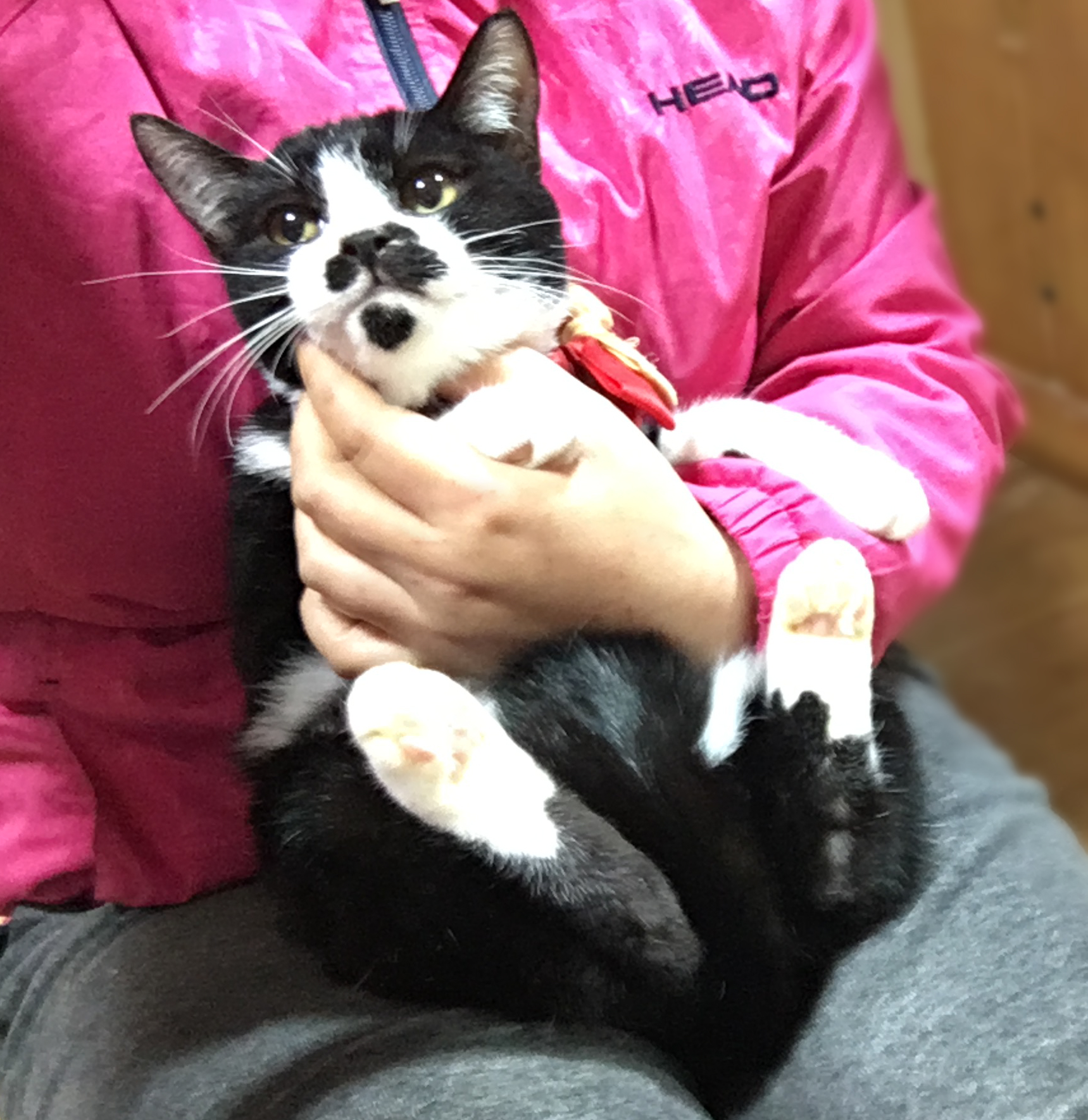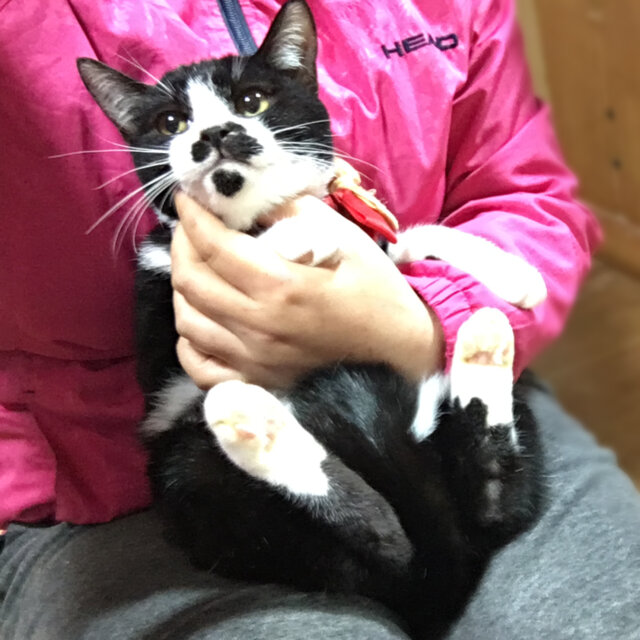 緊張していますが抱っこもできますし、なでると小さくゴロゴロもいいます。