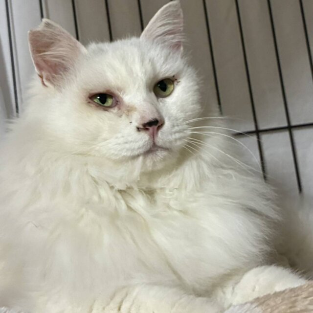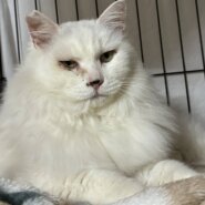 大人しく、撫でられるのが大好きな白長毛の女の子。