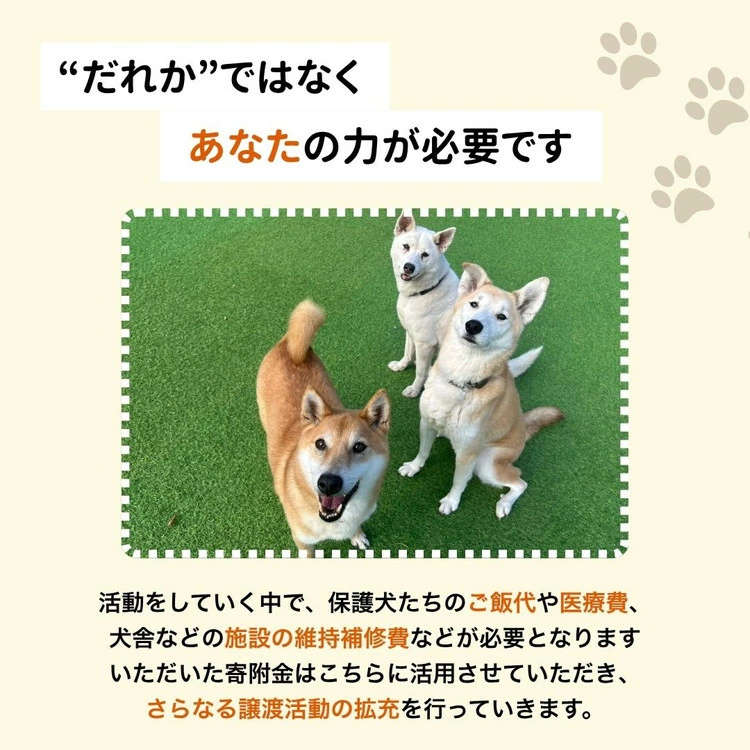 返礼品を設けないことで、その分の経費をカットし、より多くの資金を保護犬たちのために活用できる仕組みです。