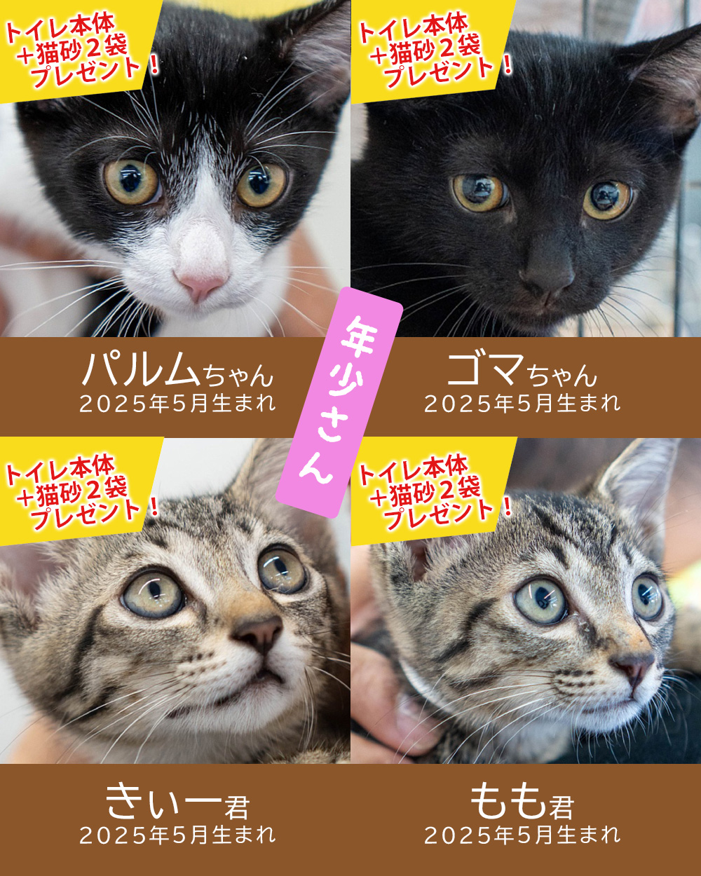 ※成猫は不妊去勢済、ワクチン済です。