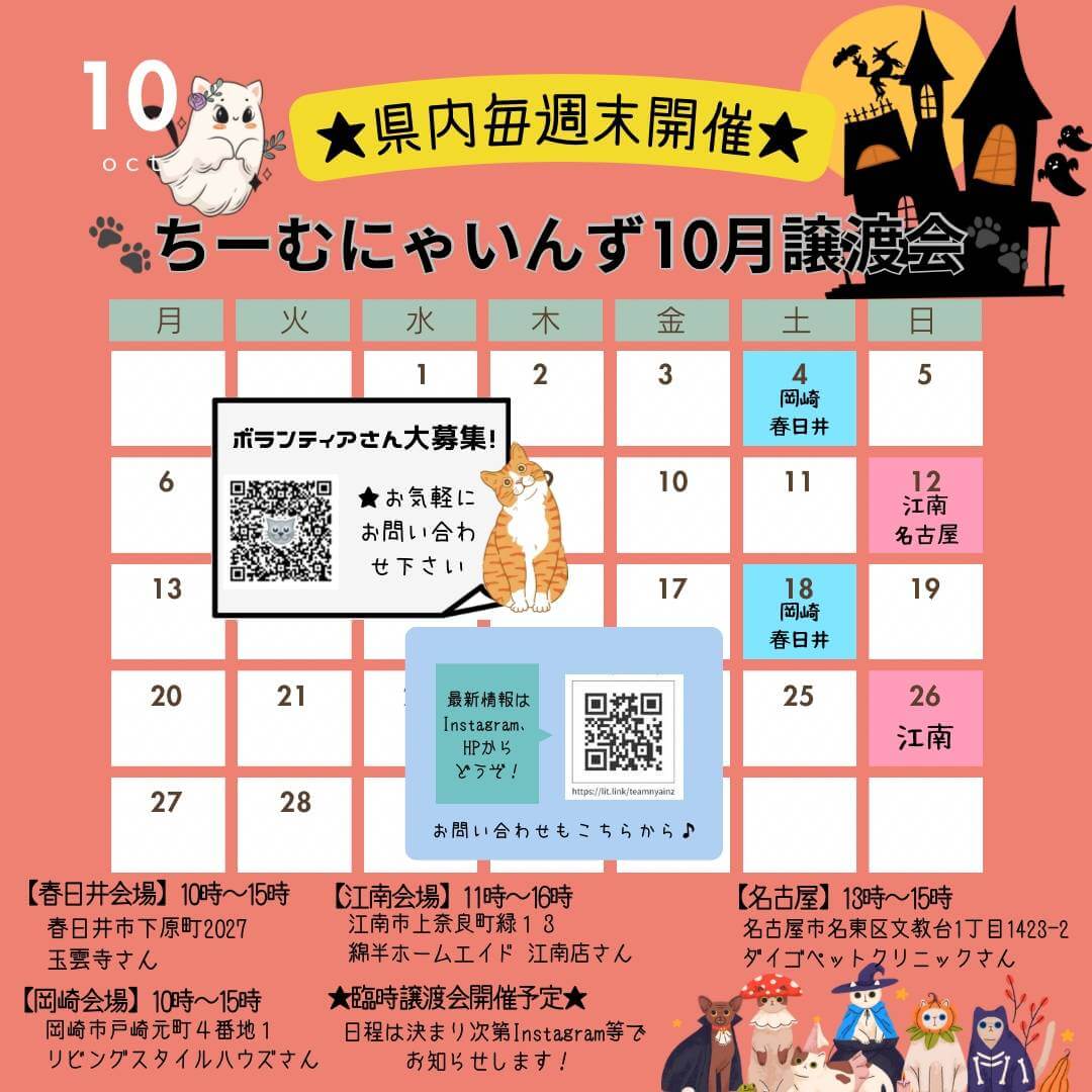 【in名古屋市☆子猫もいっぱい☆保護猫達をオウチに迎えよう☆2025年10月12日(日)~ 非営利団体「ちーむ にゃいんず」】
