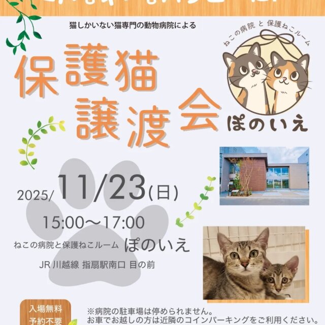 【さいたま市西区】11/23(日)さいたま市西区ぽのいえ保護猫譲渡会
