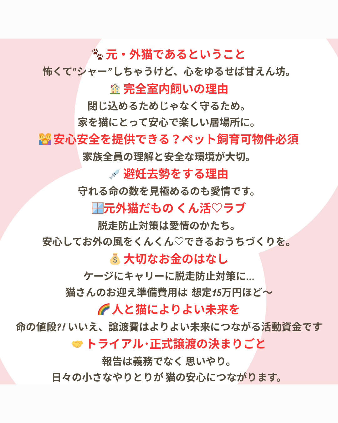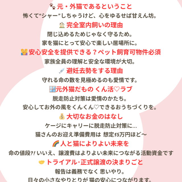 猫さんをお迎えが正式に決まりました時には、保護主さんへ活動協力金をお渡しいただいております。