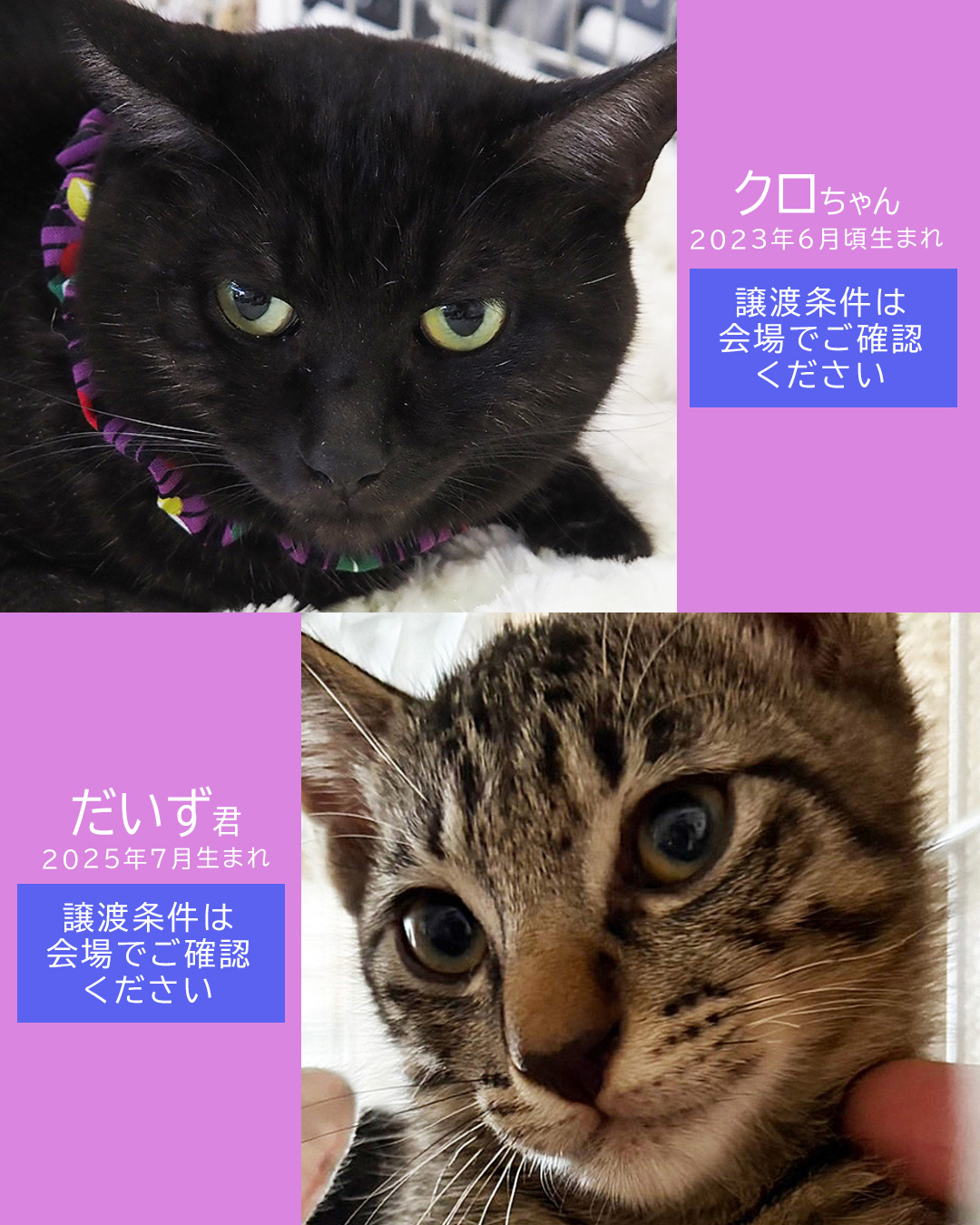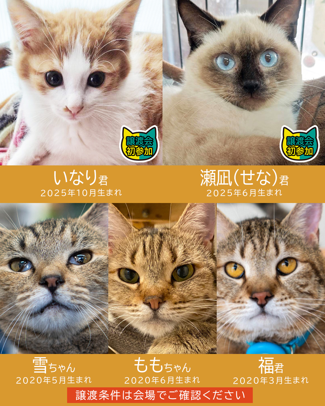 2026年初猫譲渡会の参加ねこが決まりました。
