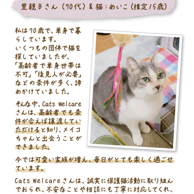 「幸せを共有する」という、保護ねこ支援。